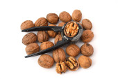 orzechy włoskie z dziadka do orzechów na białym tle