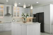 Luksusowe wnętrza kuchni z nowymi stylowymi meblami