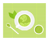Tarator, letnia zimna zupa ogórkowa z jogurtem i koperkiem. Zdrowe wegetariańskie jedzenie. Widok góry. Ręcznie rysowana ilustracja akwarelowa. Nadaje się do menu, książki kucharskiej i restauracji
