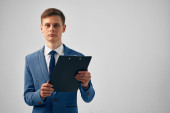 Zdjęcie "odnoszący sukcesy biznesmen w garniturze przy użyciu tabletu cyfrowego odizolowanego na szaro " może być wykorzystywane do celów osobistych i komercyjnych zgodnie z warunkami zakupionej licencji Royalty-free. Obraz jest dostępny do pobrania w jakości wysokiej rozdzielczości do 5760x3840.