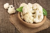 Świeże kalafiory pokroić na szarym stole, zbliżenie