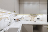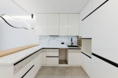 Zdjęcie "nowe jasne Studio Kuchnia z białymi meblami i oświetleniem" może być wykorzystywane do celów osobistych i komercyjnych zgodnie z warunkami zakupionej licencji Royalty-free. Obraz jest dostępny do pobrania w jakości wysokiej rozdzielczości do 5760x3840.