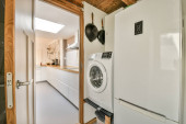 Zdjęcie "Biały korytarz ze schodami prowadzącymi na drugie piętro nowoczesnego luksusowego apartamentu z minimalistycznym wystrojem wnętrz" może być wykorzystywane do celów osobistych i komercyjnych zgodnie z warunkami zakupionej licencji Royalty-free. Obraz jest dostępny do pobrania w jakości wysokiej rozdzielczości do 5760x3840.