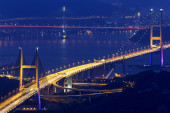 Tsing ma bridge w hong kong nocą