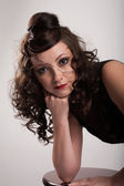 Dziewczyna z jasny makijaż i włosy w postaci nakrycia głowy