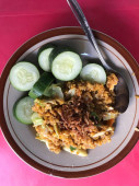 Ośmiornica Ryż azjatycki talerz żywności. Z sałatką. Zdjęcie Tajlandii Trip. Kultura i religia.