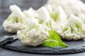Zdjęcie "Wytnij świeże surowe kalafiory na czarnym stole, widok z góry. Miejsce na tekst" może być wykorzystywane do celów osobistych i komercyjnych zgodnie z warunkami zakupionej licencji Royalty-free. Obraz jest dostępny do pobrania w jakości wysokiej rozdzielczości do 5760x3840.