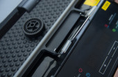 Przenośny magnetofon ze słuchawkami i kasetą izolowaną na białym tle, gadżety do The 70-80-90