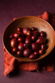 Czekoladowy deser z pysznym dżemem borówkowym na burgundowym tle