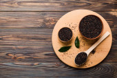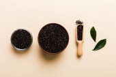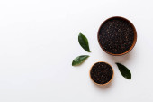 Zdjęcie "Nasiona szałwii w misce na kolorowym tle. Zdrowa hispanika Salvia w małej misce. Zdrowa superżywność." może być wykorzystywane do celów osobistych i komercyjnych zgodnie z warunkami zakupionej licencji Royalty-free. Obraz jest dostępny do pobrania w jakości wysokiej rozdzielczości do 5760x3840.