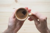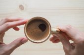 Zbliżenie na dziewczynę trzymającą filiżankę kawy w dłoniach