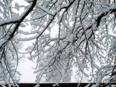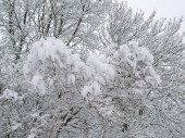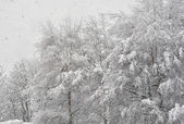 Piękny zimowy krajobraz, pokryte śniegiem drzewa w parku.