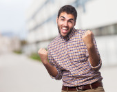 Zdjęcie "Młody człowiek robi gest zwycięstwa" może być wykorzystywane do celów osobistych i komercyjnych zgodnie z warunkami zakupionej licencji Royalty-free. Obraz jest dostępny do pobrania w jakości wysokiej rozdzielczości do 5760x3840.