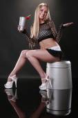 Blondynka cieszy się szampana