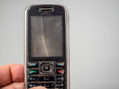 Wiele starych smartfonów na pomarańczowym tle. Stare telefony komórkowe. Zepsute smartfony.