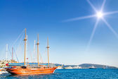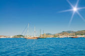 wspaniały jacht w blue bay, w pobliżu miasta bodrum.