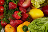 Zdjęcie stołu pełne świeżych warzyw, owoców i innych