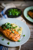 Zdjęcie "Grillowany łosoś z gnocchi i zielonych" może być wykorzystywane do celów osobistych i komercyjnych zgodnie z warunkami zakupionej licencji Royalty-free. Obraz jest dostępny do pobrania w jakości wysokiej rozdzielczości do 5760x3840.