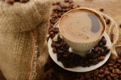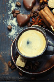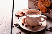 Kawy w kubek na drewniane tła kolor i delikatny kolorowy macaroons