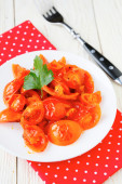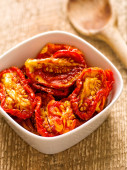 Suszonymi pomidorami koktajlowymi w misce na serwetki