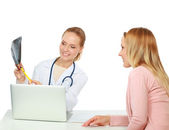 kobieta lekarz konsultacji pacjenta point komputer