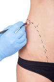 lekarz Chirurgia plastyczna rysowania linii pacjenta piersi