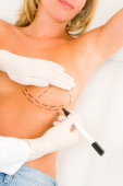 lekarz Chirurgia plastyczna rysowania linii pacjenta piersi