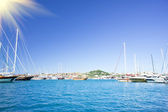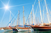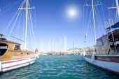 luksusowy jacht w zatoce w pobliżu miasta bodrum azure.