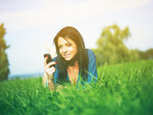 młoda kobieta za pomocą laptopa w parku