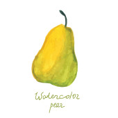 Akwarela ilustracja. Dojrzałe gruszki żółty i czerwony na białym tle.