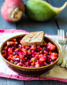 warzywo sałatka, winegret i chleb glinanoy płyta