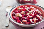 warzywo sałatka, winegret i chleb glinanoy płyta