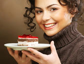 młoda kobieta zjada słodkie ciasto