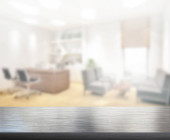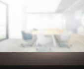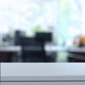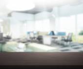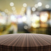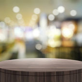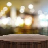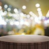 Puste drewniane okrągły stół i nieostre tło dla produktu pres