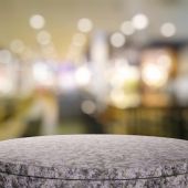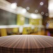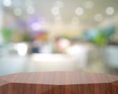 Puste drewniane okrągły stół i nieostre tło dla produktu pres