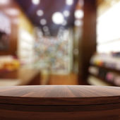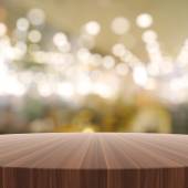 Puste drewniane okrągły stół i nieostre tło dla produktu pres