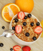 Homemade granola musli z owocami sałatka na śniadanie