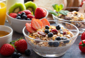 Zdjęcie "Homemade granola musli z owocami sałatka na śniadanie" może być wykorzystywane do celów osobistych i komercyjnych zgodnie z warunkami zakupionej licencji Royalty-free. Obraz jest dostępny do pobrania w jakości wysokiej rozdzielczości do 5760x3840.