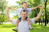 Zdjęcie "Ojciec z synem w parku" może być wykorzystywane do celów osobistych i komercyjnych zgodnie z warunkami zakupionej licencji Royalty-free. Obraz jest dostępny do pobrania w jakości wysokiej rozdzielczości do 5760x3840.