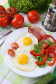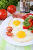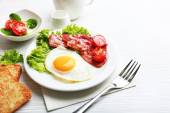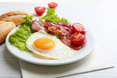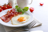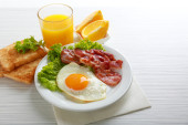Zdjęcie "Bacon i jaj na kolor drewniany stół tło" może być wykorzystywane do celów osobistych i komercyjnych zgodnie z warunkami zakupionej licencji Royalty-free. Obraz jest dostępny do pobrania w jakości wysokiej rozdzielczości do 5760x3840.