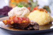 Zdjęcie "zbliżenie Bawarska pieczeń wieprzowa naczynia" może być wykorzystywane do celów osobistych i komercyjnych zgodnie z warunkami zakupionej licencji Royalty-free. Obraz jest dostępny do pobrania w jakości wysokiej rozdzielczości do 5760x3840.