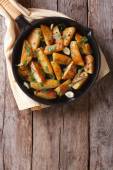 ziemniaki pieczone w patelni zbliżenie poziomy widok z góry