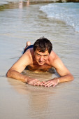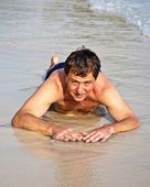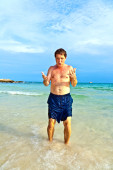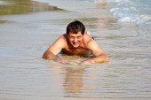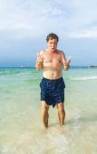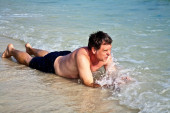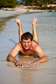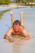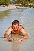 człowiek znajduje się w pięknej, piaszczystej plaży