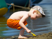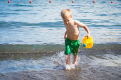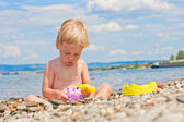 2 - letni chłopiec gra na plaży