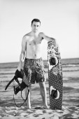 portret mężczyzny młodych kitsurf na plaży przy zachodzie słońca