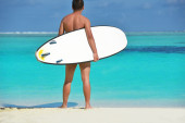 portret mężczyzny młodych kitsurf na plaży przy zachodzie słońca