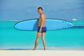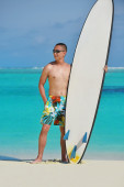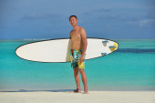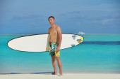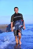 portret mężczyzny młodych kitsurf na plaży przy zachodzie słońca
