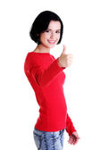Szczęśliwa kobieta z ok ręka znak