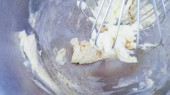 Biczowanie truskawkowy maślany lukier w samodzielnym mikserze elektrycznym z mocowaniem do trzepaczki.