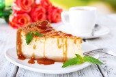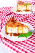 Sernik na papierową serwetkę na tabliczce na drewniane tła